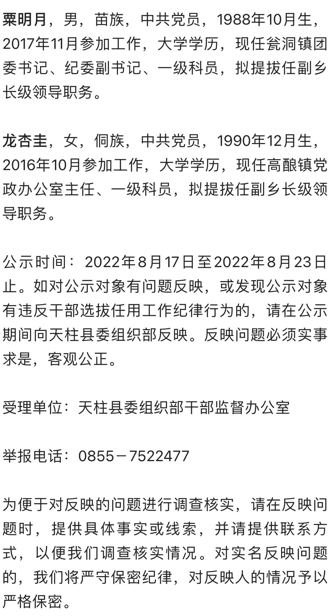 [【微信新闻】] 黔东南一地多名干部任前公示
