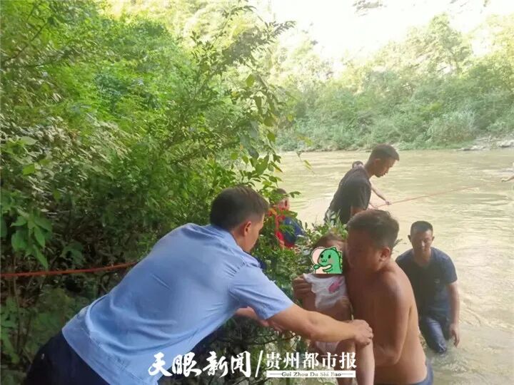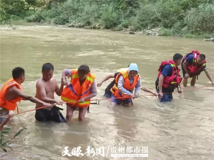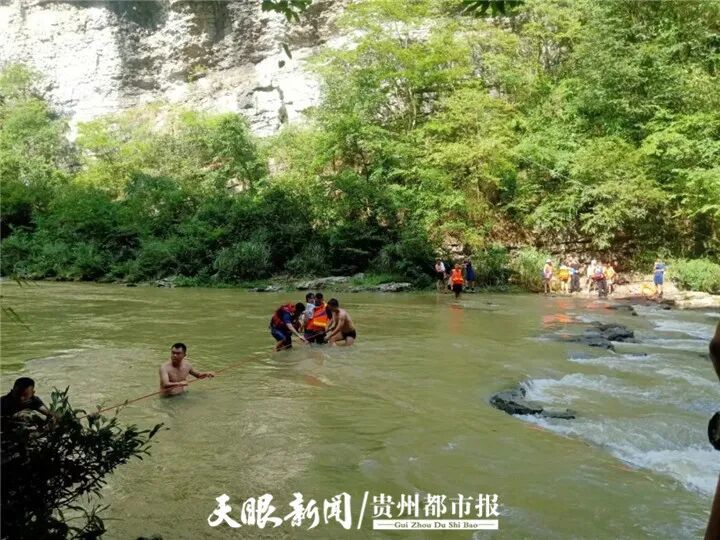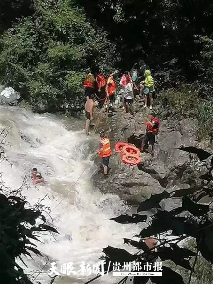 ​几名游客在贵州省贵阳市乌当区三江农场雷打岩河道游玩时,突遇发大水。现场有2名儿童、7名大人被困河道中央,情况非常危急。接警后,乌当公安和消防联手,最终将被困群众及时救出。8月17日下午,乌当公安分局向媒体通报了此事。