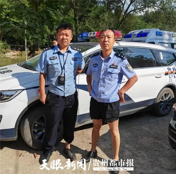 救援时,东风派出所谢凡德副所长将上衣和鞋子脱掉便进入水中,但警裤在水中阻力较大,怕耽误救援,情急之下,他回到岸边找了一把剪刀,三两下就把裤子剪掉一大截,随后跳入湍急的河流中与同事们并肩作战。