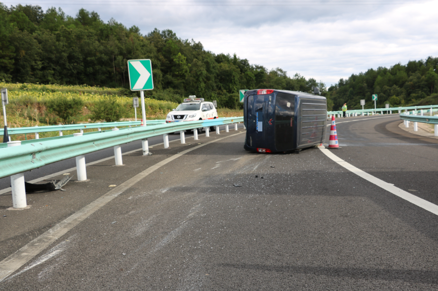 ​在驾驶机动车在高速公路行驶过程中,一定要注意观察道路指示标志,提前做好预防措施,避免事故的发生。2022年8月21日下午,黔东南州公安局交警支队高速交警二大队就处理了一起在行车过程中因未观察道路标志,车辆在匝道行驶过程中未提前减速,导致车辆刮撞道路中央隔离护栏后侧翻在匝道上的道路交通事故。