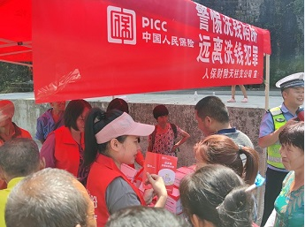 人保财险黔东南州榕江支公司积极组织公司员工进社区开展“反洗钱、反有组织犯罪”宣传活动。
