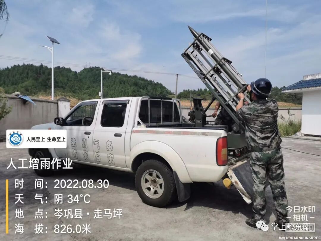 自8月以来,凯里市降水量为10.3 mm,较常年同期偏少91%,气温28.5℃ ,较常年同期偏高3.1℃ 。凯里市出现了历史少见的连续高温少雨天气,各镇(街)出现了不同程度的气象干旱,给农作物生长及农村人蓄饮水造成困难。30日至31日这次冷空气南下过程,市委、市人民政府高度重视,要求市气象局一定要抢抓时机进行人工增雨作业。气象部门一直在紧密观察气象数据,30日下午17时,当我市出现雷达回波时,各炮站及时的开展了增雨作业。