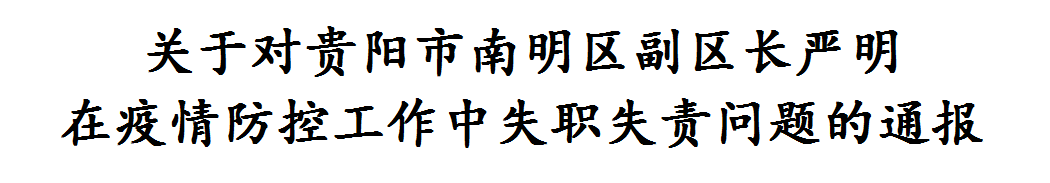 [【微信新闻】] 在疫情防控工作中失职失责,贵阳市南明区副区长被通报! |