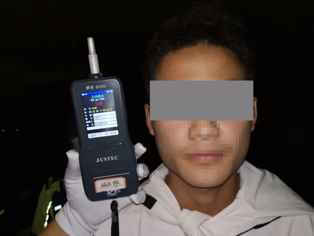 案例3 姓名:张*宇 时间:2022年9月17日 车牌号:普通二轮摩托车车(无牌) 违法地点:金井路200米 违法行为:涉嫌醉酒后驾驶机动车 呼气式酒精测试仪检测,结果为118mg/100ml (最终以血检结果为准) 案例4 姓名:杨*荣 时间:2022年9月17日凌晨 车牌号:贵HSH736 违法地点:金井路200米 违法行为:涉嫌醉酒后驾驶机动车 呼气式酒精测试仪检测,结果为89mg/100ml (最终以血检结果为准)