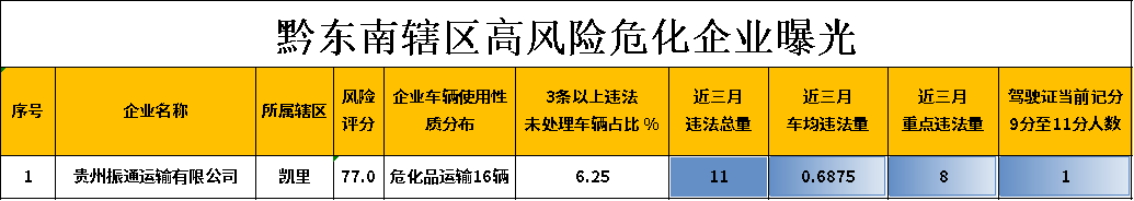 [【微信新闻】] 黔东南州12家高风险货运企业、1家高风险危险化学品企业被曝光! |