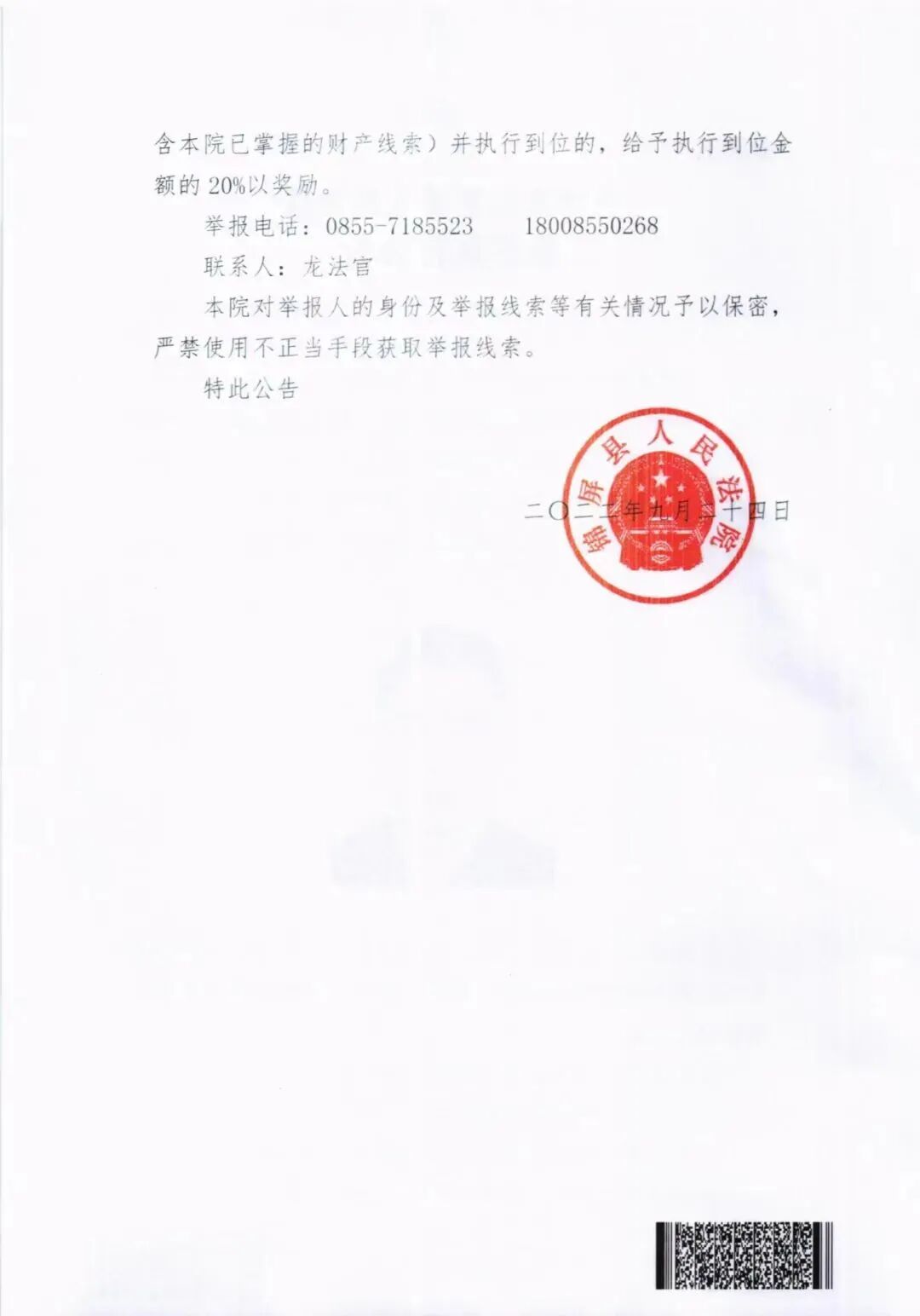 来源:锦屏执行