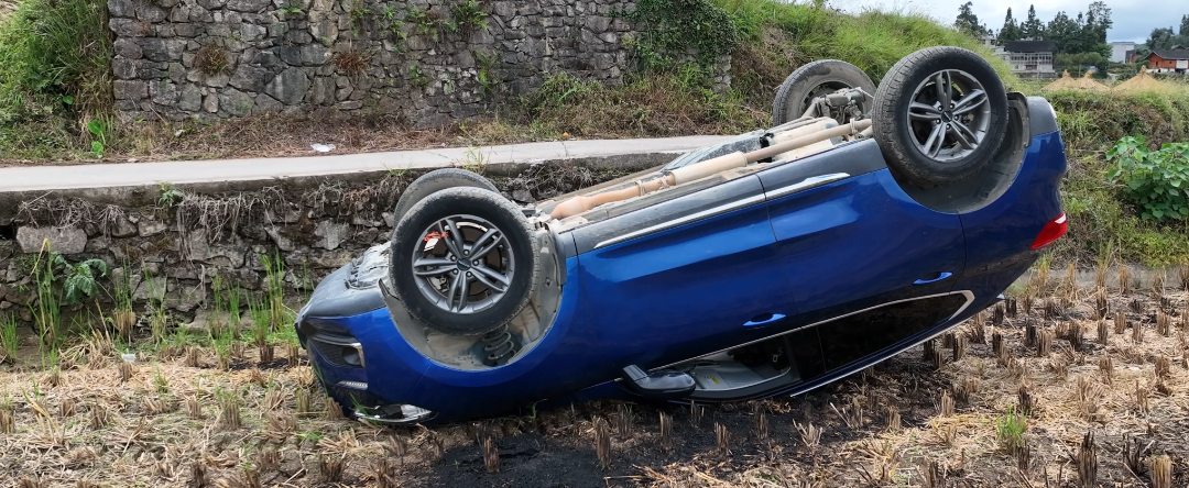 [【微信新闻】] 乡村道路操作不当 车辆四脚朝天“躺”田里 |