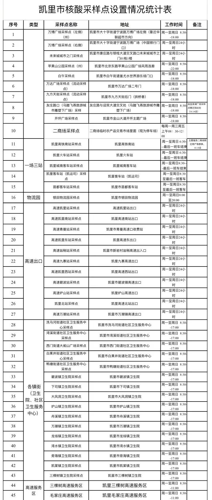 [【微信新闻】] 就近检测!凯里新增20个临时核酸采样点