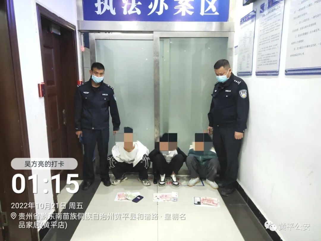 10月18日,黄平县公安局接到一群众报警称:自己停放在新州镇党校路路边车辆内的24000元现金被盗。接到报警后,县人民政府副县长、公安局党委书记、局长李辉高度重视,立即安排部署,副局长吴廷华同志立即组织刑侦大队城关中队开展案件研判,并联合大数据作战中心图侦人员迅速开展联合调查。经图侦人员调取现场周边视频监控,发现两名疑似作案人员,刑侦大队立即开展走访摸排,经连续两天不懈努力锁定两名嫌疑人身份,10月20日晚刑侦大队确定嫌疑人行踪后立即组织开展抓捕工作,于 10月 21 日凌晨将涉案三名嫌疑人抓获,追回赃款一万五千余元及用赃款购买物品若干。