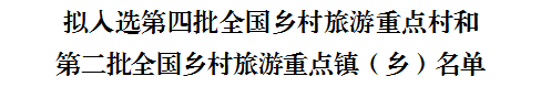 按照《中华人民共和国乡村振兴促进法》《“十四五”旅游业发展规划》相关要求,文化和旅游部、国家发展改革委联合开展了全国乡村旅游重点村镇遴选推荐工作,确定了拟入选的第四批全国乡村旅游重点村名单和第二批全国乡村旅游重点镇(乡)名单,现予以公示,公示期5日。