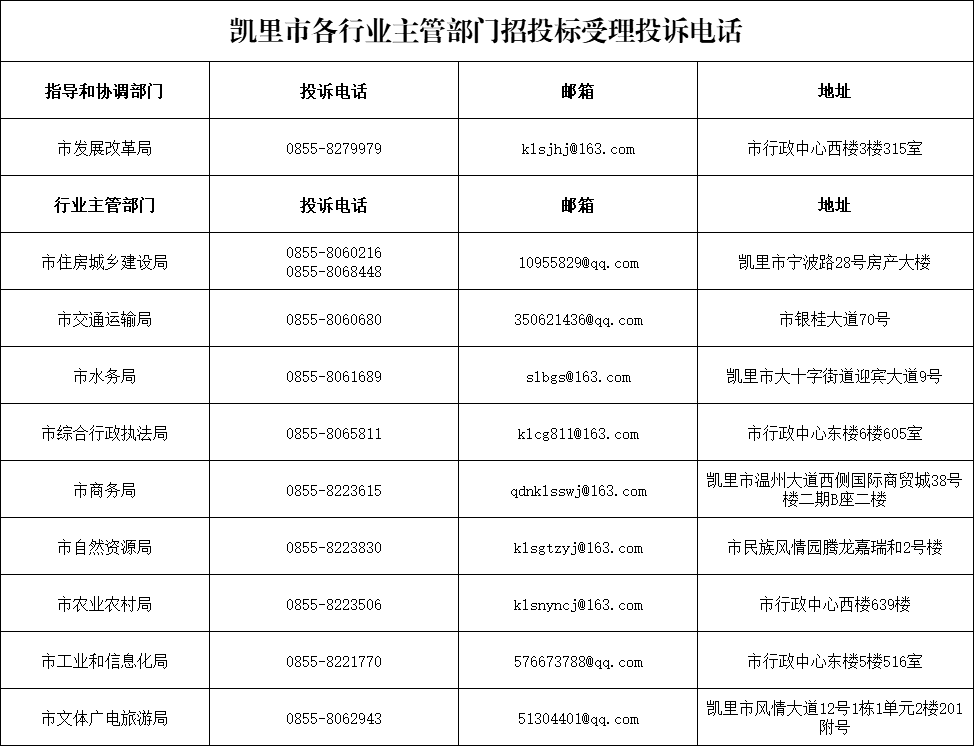 [【微信新闻】] 转需!凯里市各行业主管部门招投标受理投诉电话