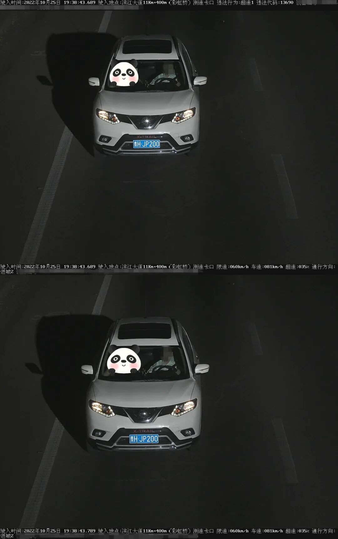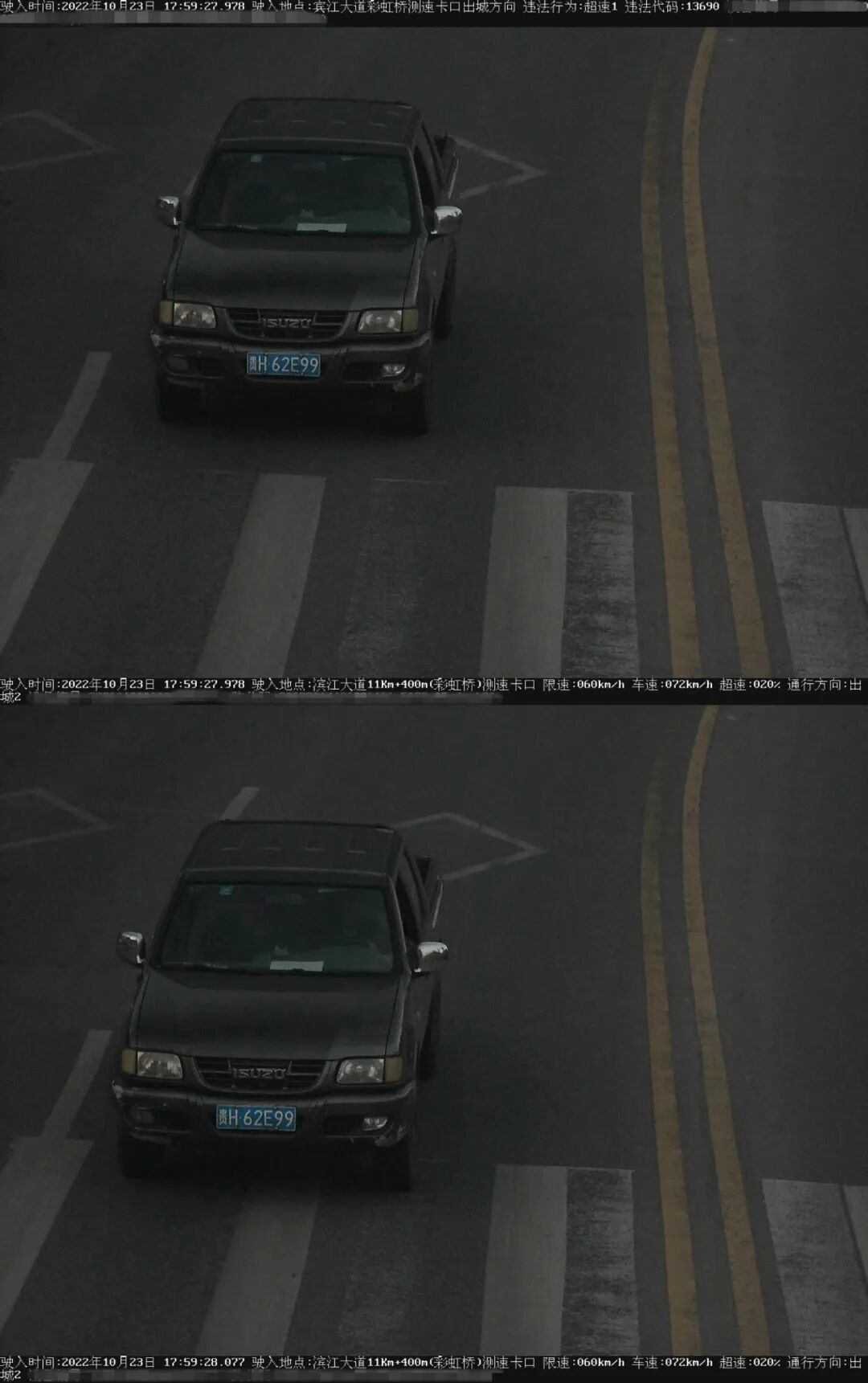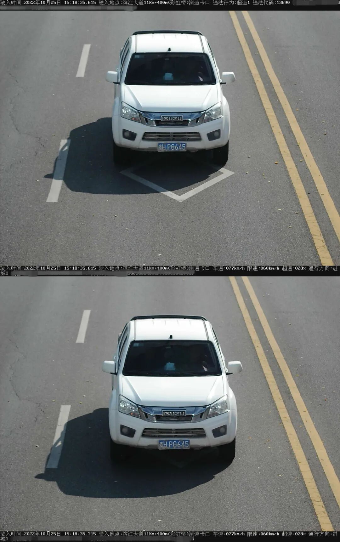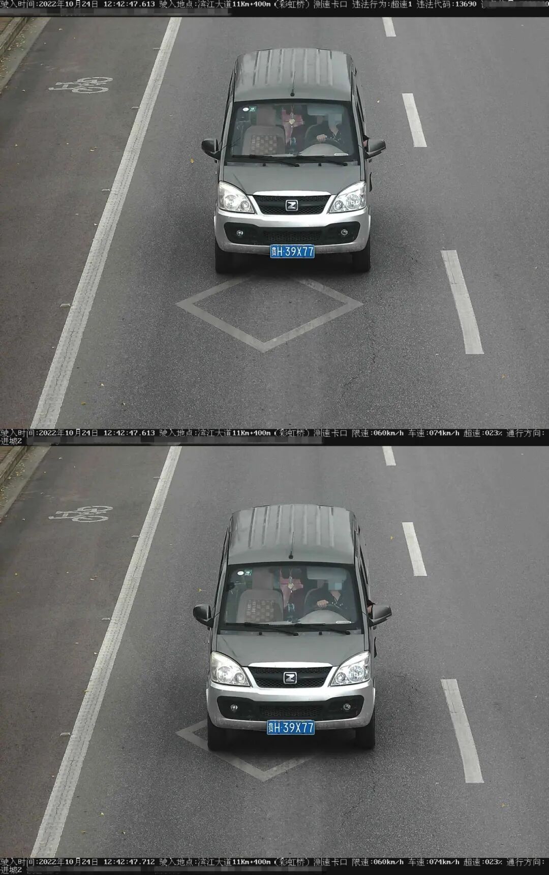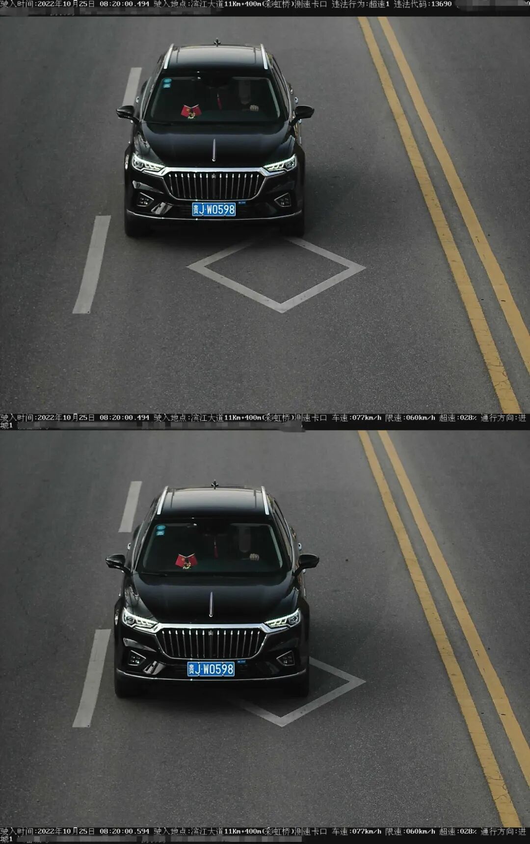车牌号:贵HPG645违法时间:2022年10月25日违法地点:滨江大道车速:77km/h