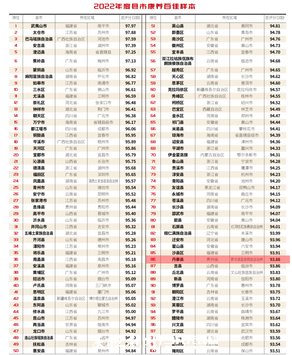 [【微信新闻】] 黔东南一地入选全国“2022年度县市康养百佳样本”榜单 |