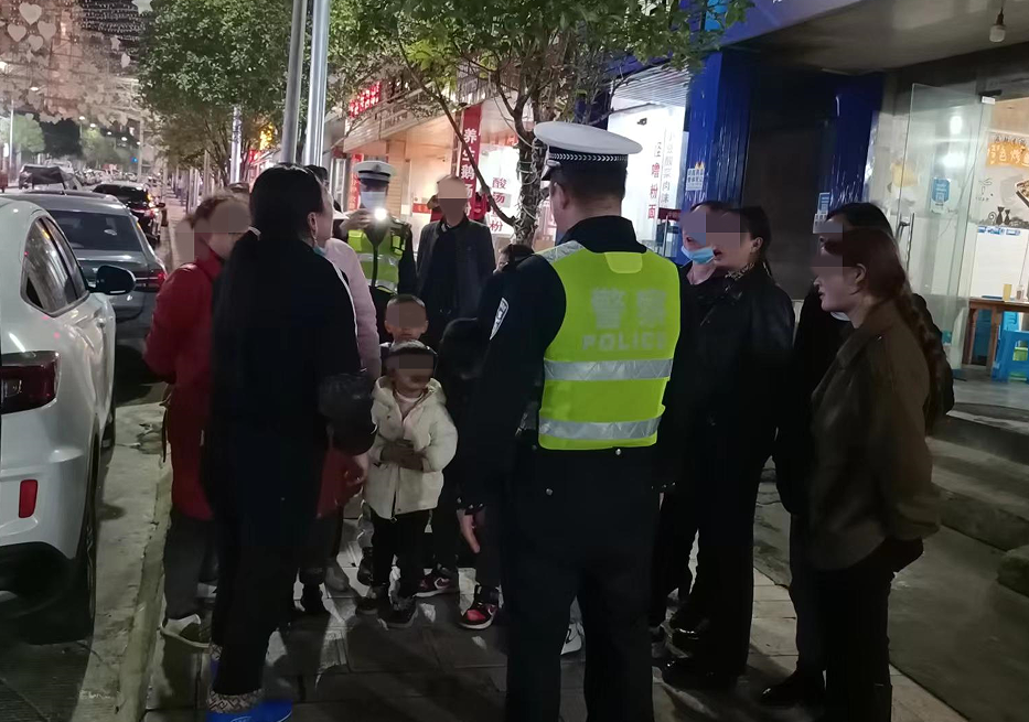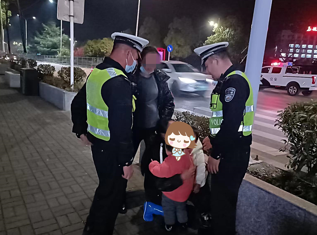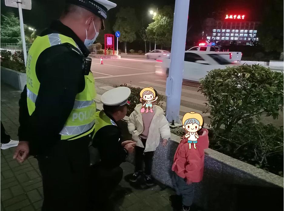 11月6日19时许,六盘水市水城区公安局交警大队在辖区的两江公园附近开展夜查行动。一名热心群众告诉执勤交警:“有两名三岁左右的幼童在路边徘徊,身边没有家长的身影,请你们跟我过去看看。”