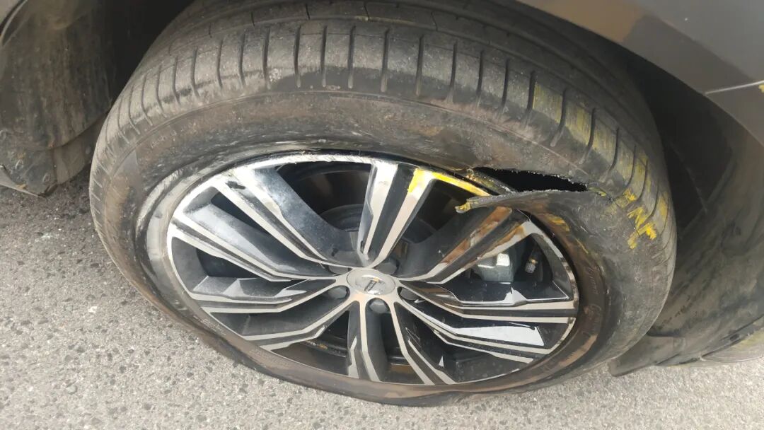 询问驾驶员 民警经询问了解得知,驾驶员尚某驾驶贵H牌棕色轿车行驶至镇远南匝道急弯处时,扭头转向后排,准备用右手扶起后排倒地的水桶,哪知扭头瞬间,车辆撞击右侧水泥防护挡墙,导致车辆右前轮破损,以及前翼子板刮擦受损的交通事故。