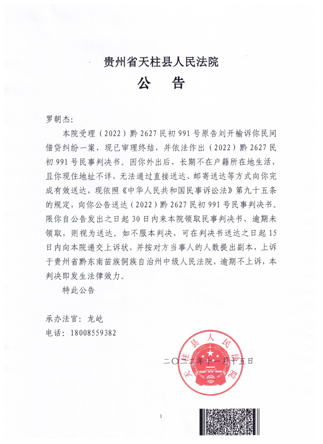 [【微信新闻】] 贵州省黔东南一县人民法院公告