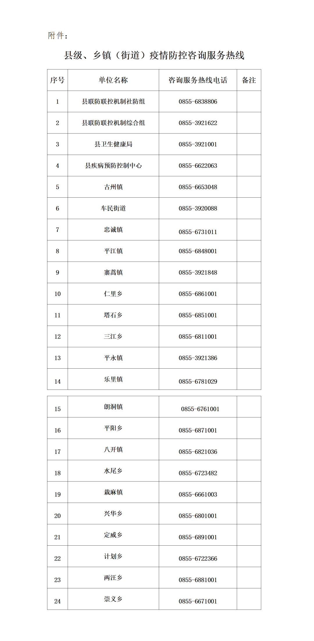 0855-6223371(县联防联控机制综合组)