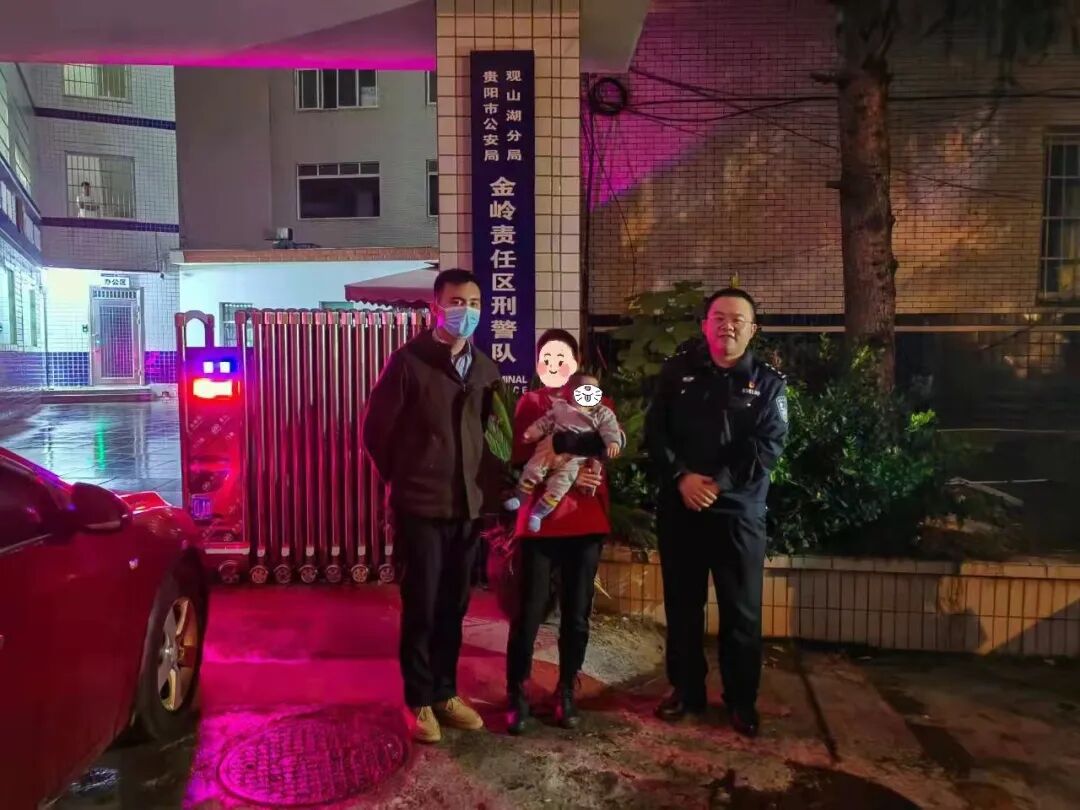 “上车的时候,孩子一直在哭,万幸的是我们找到他了。”就这样,贵阳市公安局观山湖分局刑侦大队民警在高速路口等了不久后,一举将涉案嫌疑人王某控制,安全顺利的救出孩子,并带回队里等待李陈颂们的到来。