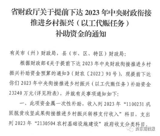 [【微信新闻】] 这笔中央财政补助提前下达,快看黔东南有多少?