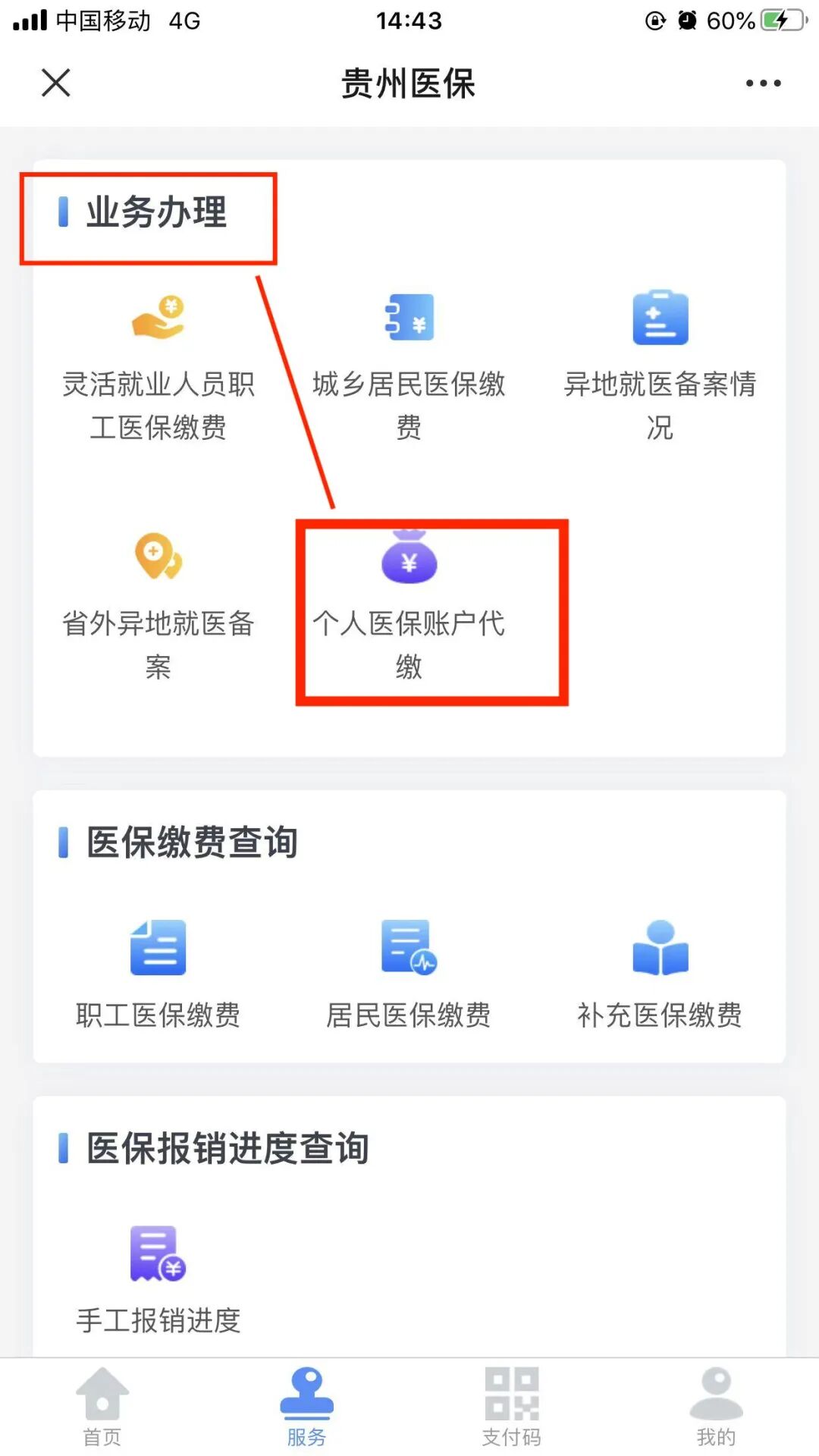 注意:使用这项服务有个前提,必须先绑定两者的“共济”关系。