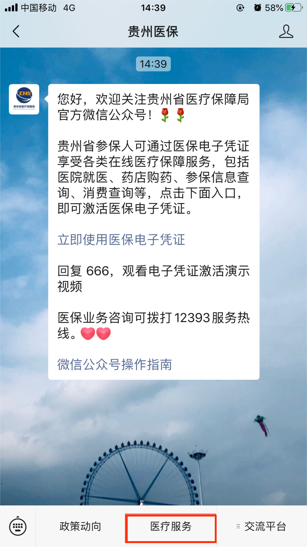 第一步:手机微信搜索关注“贵州医保”微信公众号;