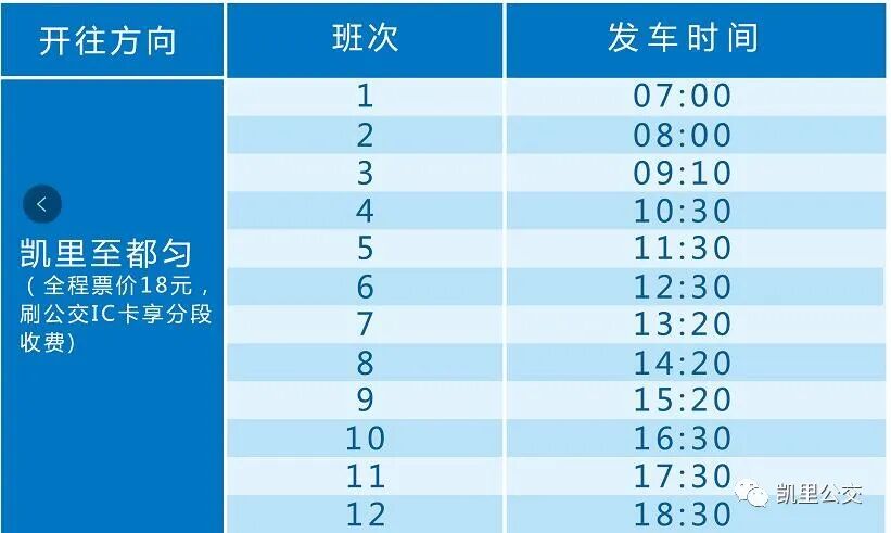 2022年12月28日起, 凯都(都凯)城际公交线恢复正常运营,发车时间和线路站点均不变。