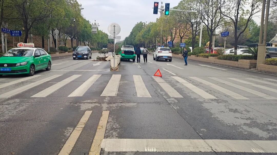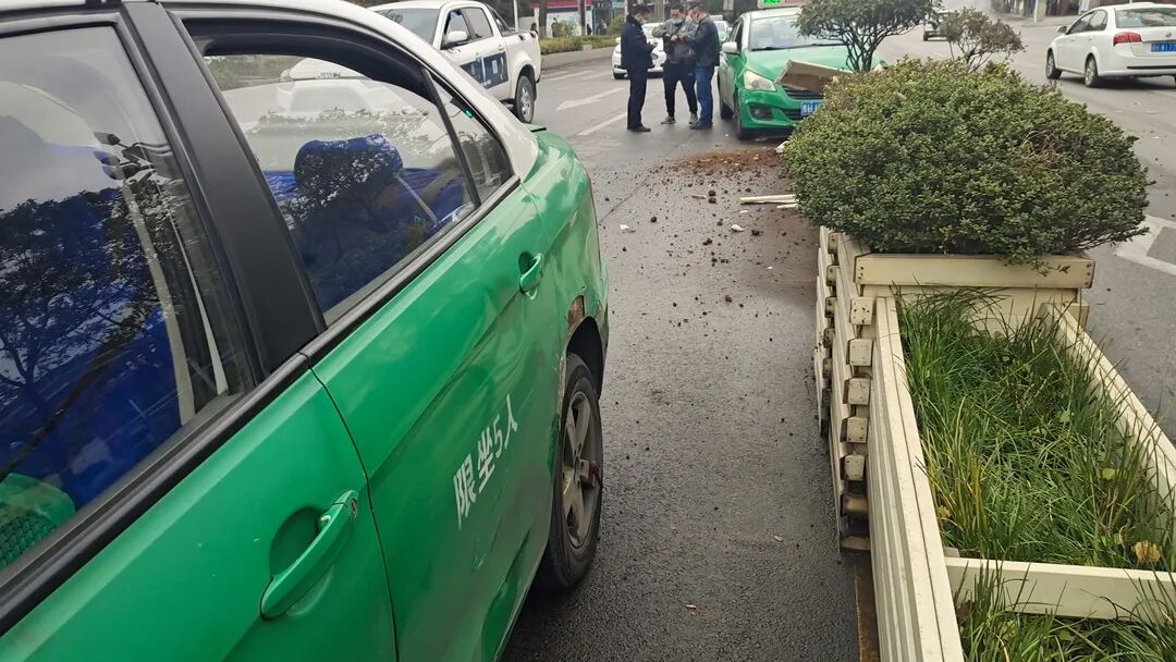 接到报警后,民警迅速赶往现场进行勘查。民警赶到现场后发现,两辆出租车一前一后停在最左侧车道,前方出租车左后侧车身有剐蹭痕迹,后方出租车左侧车身与中央绿化带花坛相撞,右前侧车身有刮痕。