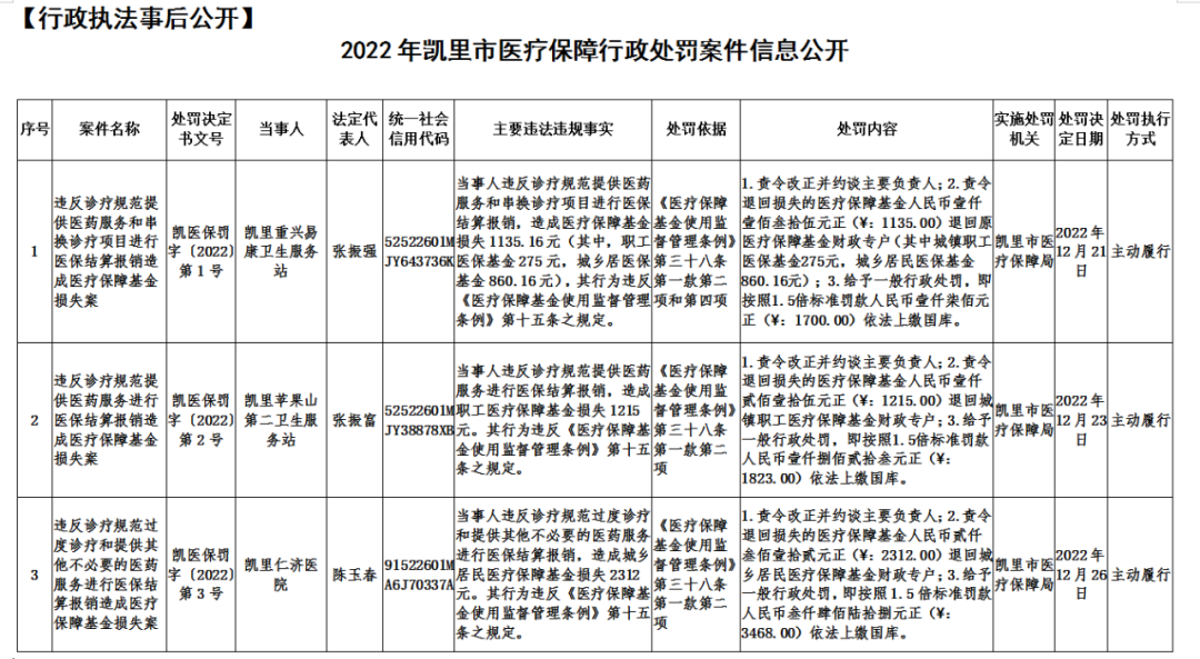 [【微信新闻】] 违规进行医保结算报销,凯里2个卫生服务站、1家医院被处罚! |
