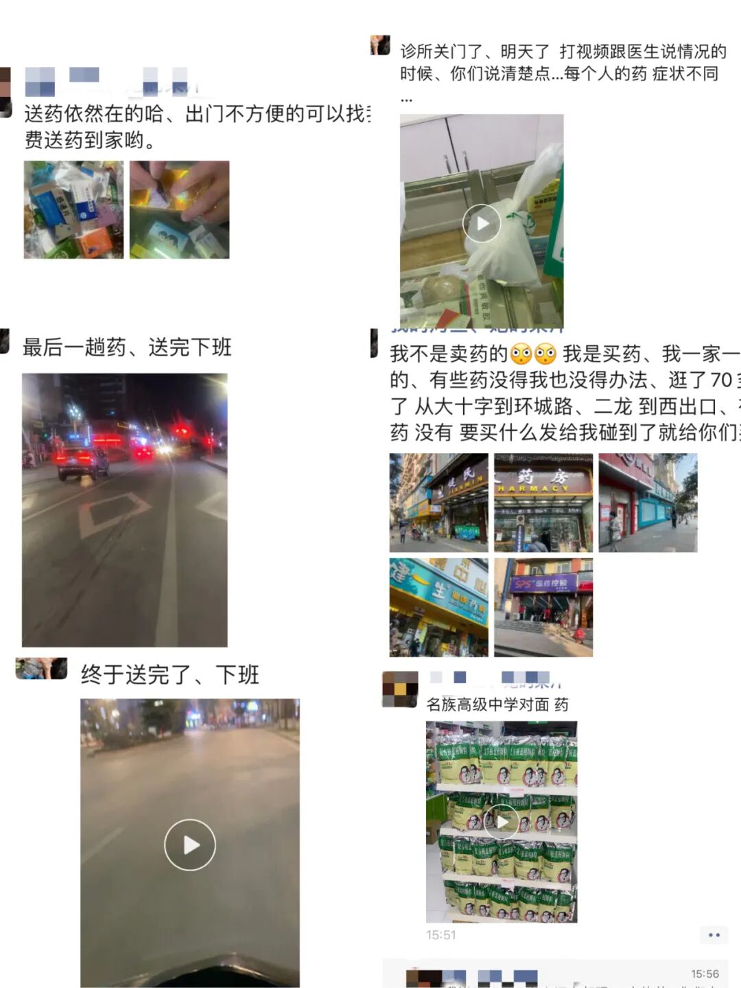 ​“免费送布洛芬、阿莫西林、美林退烧药......”“送药依然在的哈、出门不方便的可以找我免费送药到家哟。”“2023大家早日康复、活蹦乱跳、健健康康的、 要送药了记得喊我”......