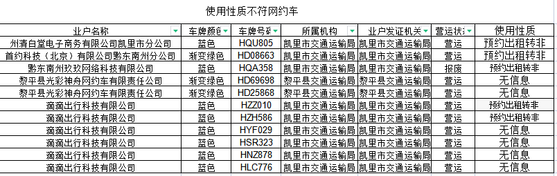 全州注册危化品运输企业37个,使用性质为“危化品运输”车辆893辆(含挂车200辆),“预约出租客运”车辆2165辆,其中登记在企业名下的有64家719辆,登记在个人名下有1446辆。 01高风险危化运输企业黔东南6家高风险企业: 贵州路通安达运输有限公司 贵州省贵通危货运输有限公司 贵州时恒宏物流有限公司 凯里市祥通运输有限公司 黔东南州跃达运输有限公司 02部分企业主体责任难以落实贵州博通石化运输有限公司贵H41061、贵H32817车辆驾驶员分别于2023年1月6日、1月7日在行车途中抽烟,监控人员未发现,贵H37416于12月16日GPS故障直到1月7日未修复。
