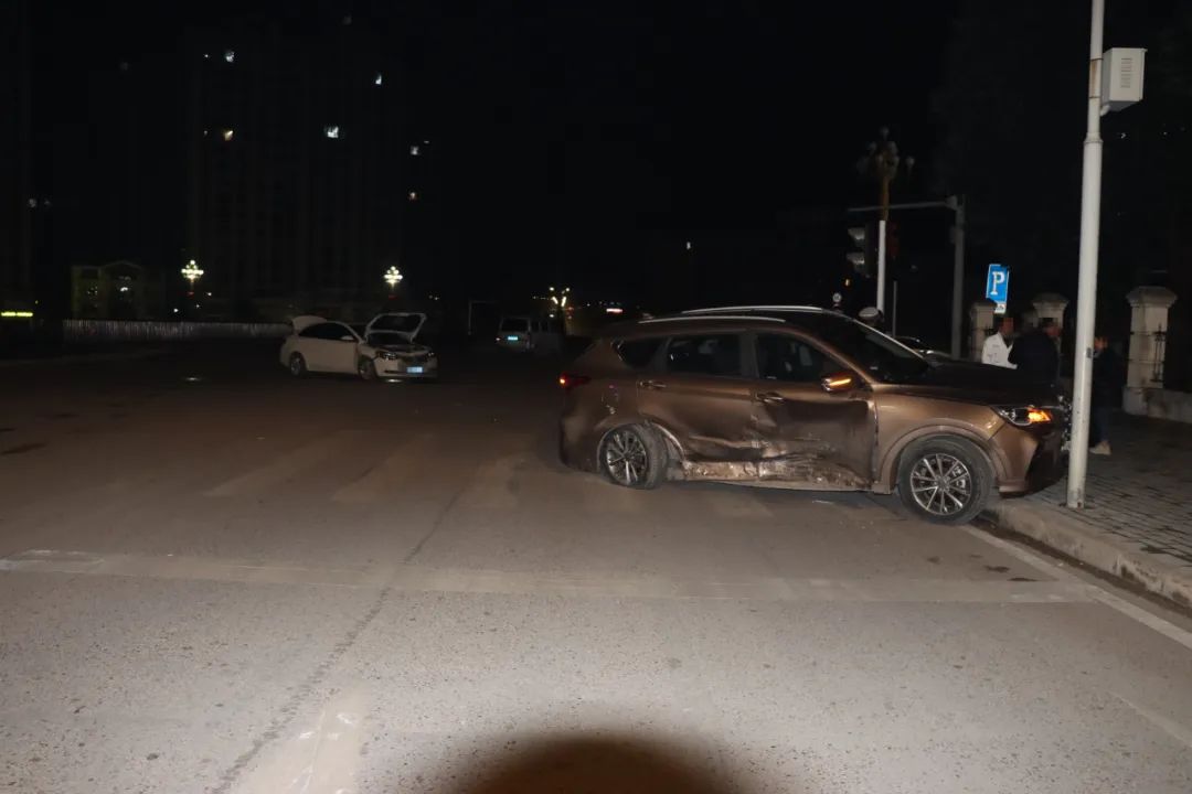 经褐色轿车驾驶员吴某讲述,自己当天晚上就喝了酒,从双井来城区赴约,由于是凌晨找不到人开车,便一个人抱着侥幸心理驾车进城,来到事发路段时,没有注意提前减速观察在通过路口导致事故发生,幸好系好了安全带,没有造成人员受伤。