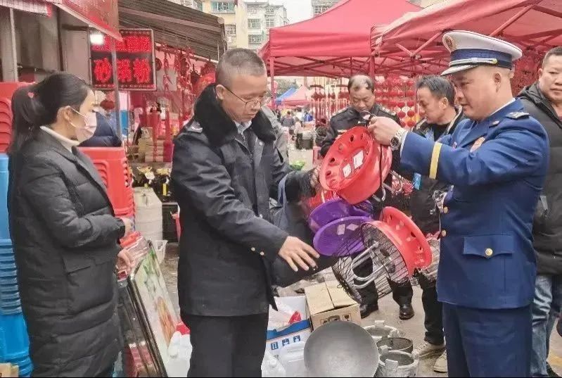台江县 台江县消防救援大队联合应急、市监、台拱街道等多部门开展商贸城市场假冒、伪劣电器产品专项检查工作。 检查集中针对集市临街门面、摊位、日用超市、五金店、电器产品专营店所售卖的插排、取暖器、线缆等电器产品进行抽查。 现场认真核查电器产品的出厂信息、生产日期、合格证明,是否符合国家标准,是否存在兜售假冒伪劣电器产品。对检查中发现的42件 不合格电器产品,检查组现场予以没收,并口头责令商家整改,要求经营户依法依规履行电器产品进货检查验收制度,强化对电器产品质量的日常监管。     同时,采取“执法+宣传”方式,向经营者和过往群众讲解假冒伪劣电器产品给人民群众带来的危害,引导经营户合法守法经营。 此举,进一步规范了辖区电器产品市场经营秩序,增强了人民群众消防安全意识,大力提升了百姓防范化解火灾事故能力,真正起到了从源头上消除隐患,保障人民群众生命财产安全。
