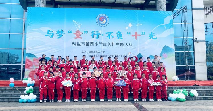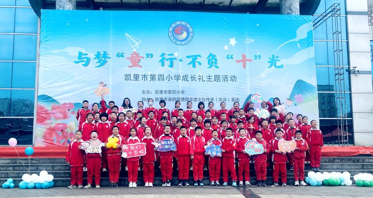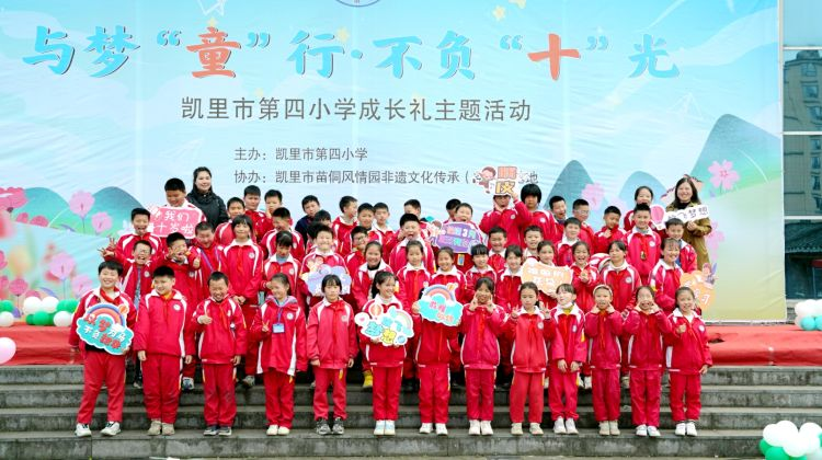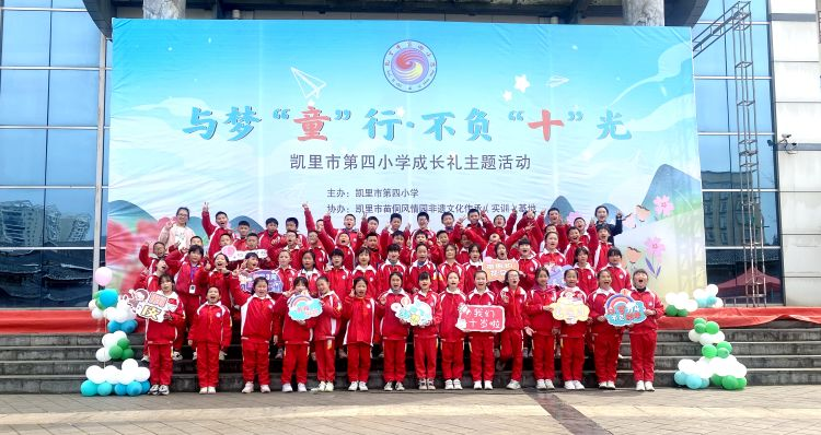 (愿我们梦想成真!) 童心向阳——吟诵《少年中国说》 “少年强则国强!少年智则国智!”中华经典的铿锵音韵在我们耳边回响。中华经典的千古风韵在我们心头荡漾。同学们带来的诗歌吟诵新《少年中国说》开篇。铮铮宣言,铿锵有力,他们定能努力拼搏,勇往直前!快乐成长——一起向未来阳光少年爱唱、爱跳、爱用自己的方式表达爱。看!四年级的同学们用精彩纷呈的节目手势舞《一起向未来》,为自己的十岁生日献上美好的祝福!未来可期,相信同学们将会迈好人生的每一步!放飞梦想——幸福成长一颗气球,满载着孩子们对未来的期许和愿望,放飞气球,放飞梦想。承载着美好的愿望,承载着对未来的期盼,为今天的凯里市第四小学首届十岁学生成长礼画上一个圆满的句号!