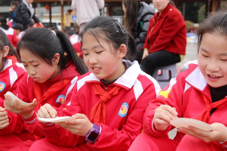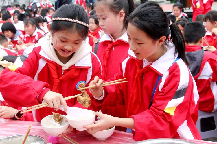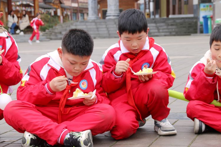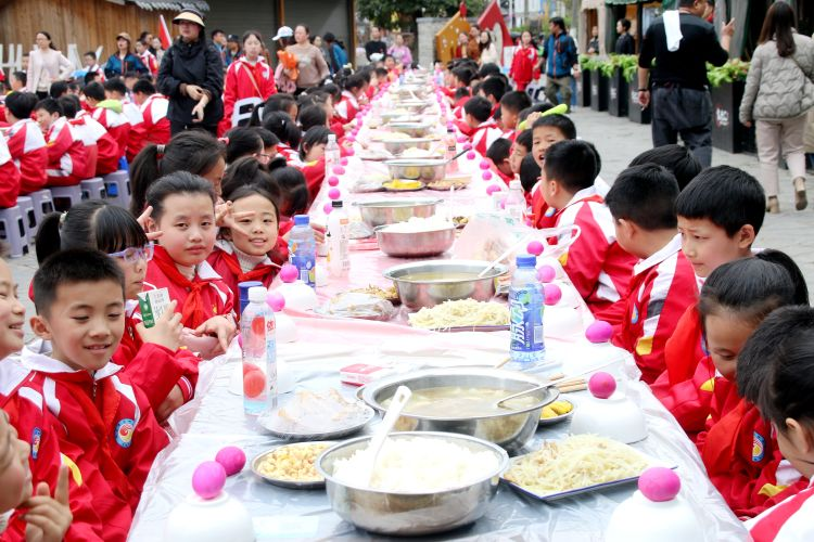 体验苗侗族特大宴席——长桌宴 午餐时间到,同学们品尝苗侗族特大宴席,在欢声笑语中感受苗侗民族菜和传统小吃带来的温暖和烟火气。同学们们吃出浓浓的民族节日“味道”,欢乐之情更是溢于言表。(享用苗侗长桌宴)