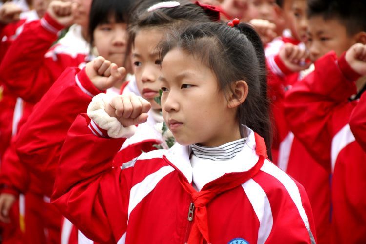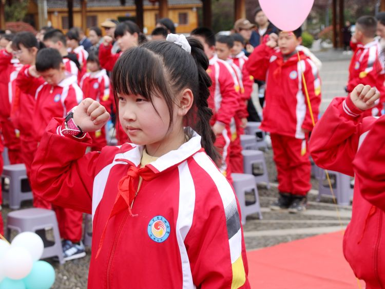 向阳而生——送祝福 大队辅导员刘美余老师为同学们送上了满满的期盼和祝福。她说不管你们将来成为出类拔萃的伟人,还是普普通通的劳动者,但一定会是一个正直、勇敢、独立,有着优秀品质和爱心的人。让我们记住此时此刻,让我们留下这值得珍藏一生的教育记忆,让我们放飞理想,在心灵埋下一颗幸福的种子,共同期待美丽绽放与收获。(大队辅导员刘美余老师讲话) 十岁宣言——展翅翱翔 全体学生高举起右手握拳宣誓,铮铮誓言,铿锵有力,每一字每一句,都表达出同学们的决心。伴随着庄严的宣誓声,凯里四小学子们将怀着对未来的无限憧憬,坚定地走好人生的每一步,在梦想的天空展翅翱翔。(高喊誓言,心怀梦想)