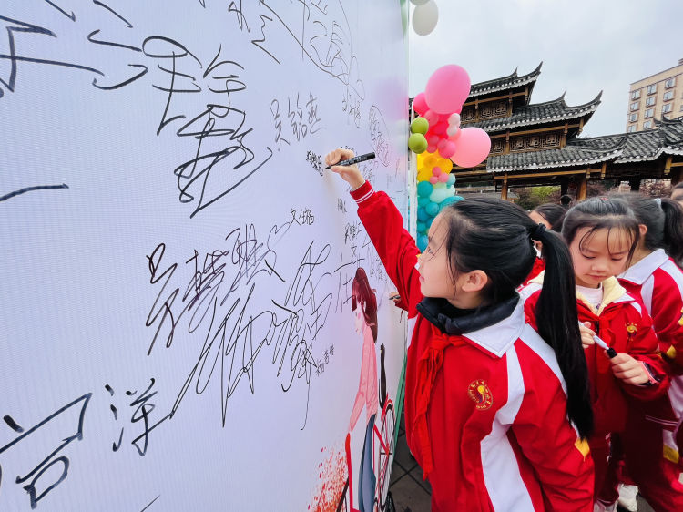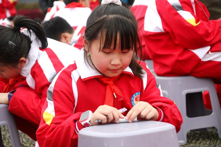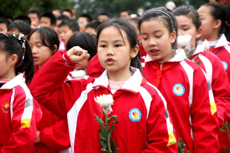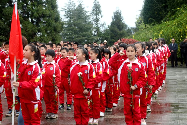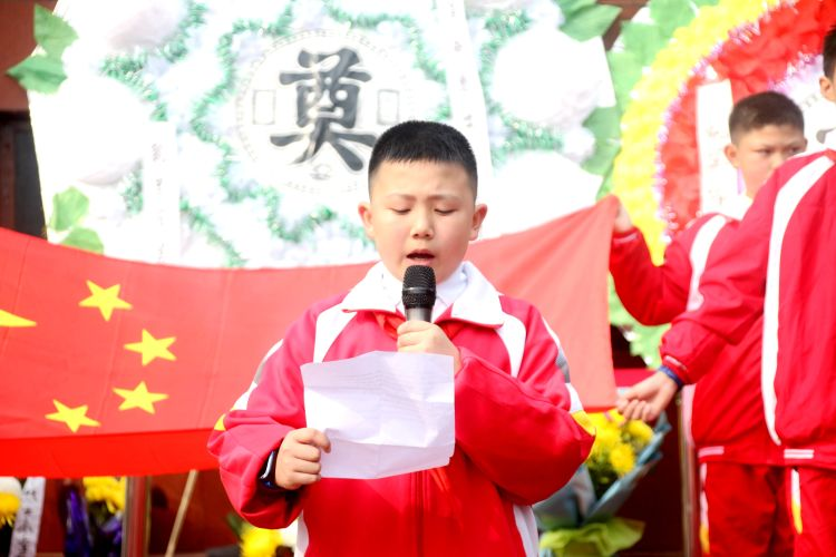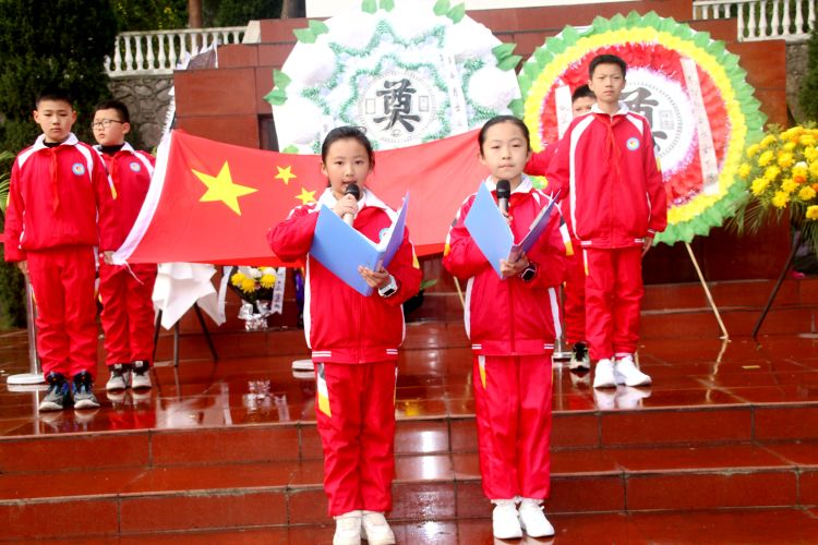 (整理挽联) 大队辅导员杨通英老师为本次主题活动作讲话,她说:正是因为有了这些革命先烈,才有祖国的繁荣昌盛。同学们要懂得所肩负的历史使命,要发奋学习,为国增光,为国添彩!(大队辅导员杨通英老师讲话) 学生代表发言,他说:让我们接过先辈手中鲜红的旗帜,沿着革命先辈的光荣路程,带着使命以成长礼为新的起点,为实现中国梦的伟大事业不断前行!