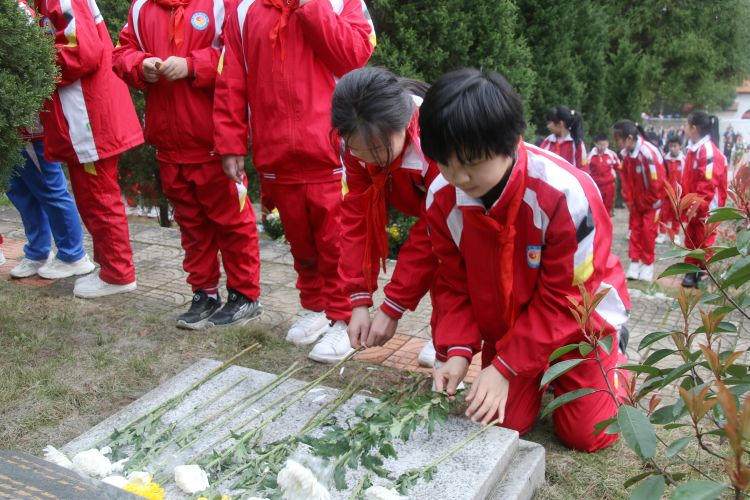 (缅怀革命先烈) 同学们依次为革命烈士献上菊花,以表达对烈士们的无限哀思。枝枝淡菊寄哀思,千人潮涌祭英烈,传承是最好的纪念,英雄从未走远,精神薪火相传,向英雄致敬!(向革命英雄致敬) (一朵白菊花,一抹英雄魂)