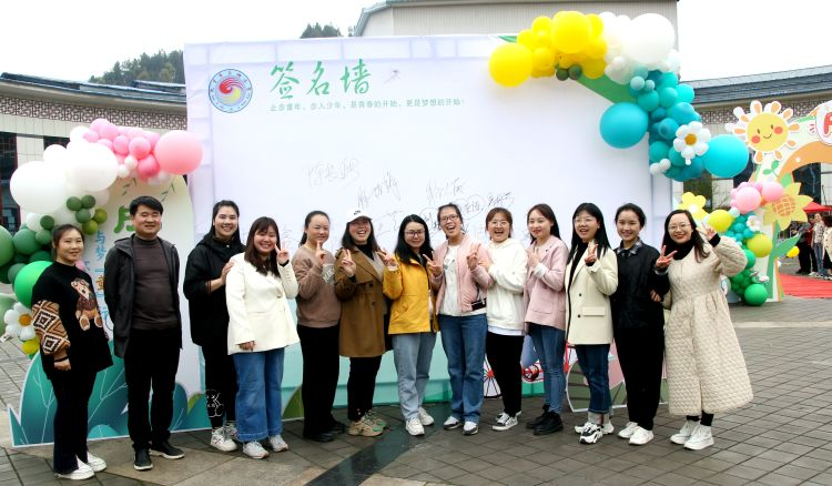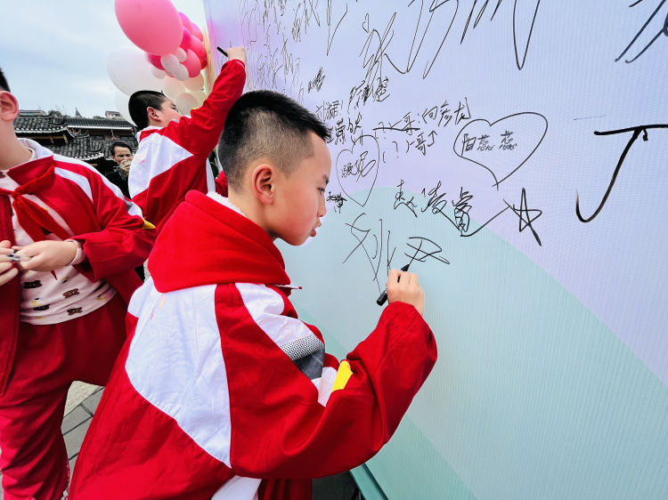 花开十年——成长有礼 伴随着轻松欢乐的旋律,老师和家委带头留下签名,随后同学们在签名墙留下十岁的成长印记,你们一笔一划写下了自己的名字,在心中许下了专属的小愿望。(老师留下签名) (老师合影留念)