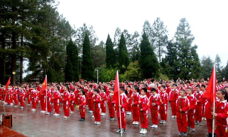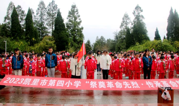 十岁是你们金色童年中的一个逗号,是你们成长历程中绚烂的一笔。 为大力弘扬革命烈士精神,引导青少年践行社会主义核心价值观,用一次特别的仪式来见证凯里四小学子的成长。贵州共博文旅运营管理有限责任公司组织凯里市第四小学四年级400余名师生于2023年3月31日前往烈士陵园和苗侗风情园非遗文化传承(实训)基地开展清明暨成长礼主题活动,向革命英雄表达最崇高的敬意与最深切的缅怀,也在十岁成长礼中留下值得珍藏的美好记忆。 从学校出发前往金泉湖烈士陵园,同学们一路上喊着嘹亮的口号,唱着经典红歌,以抖擞的精神,浩浩荡荡迈着整齐的步伐朝着目的地出发。