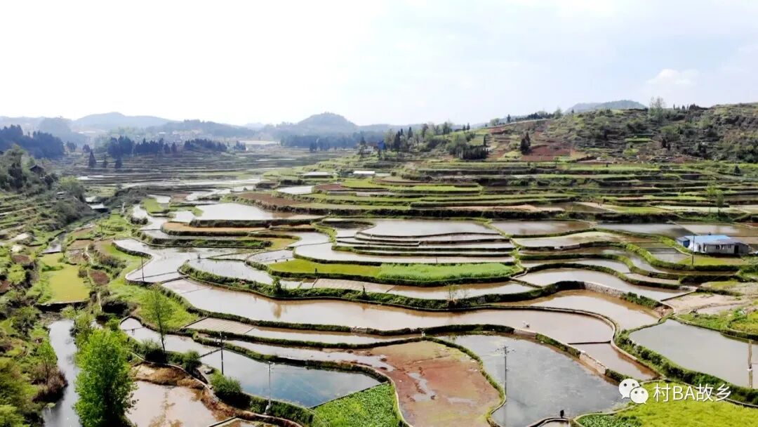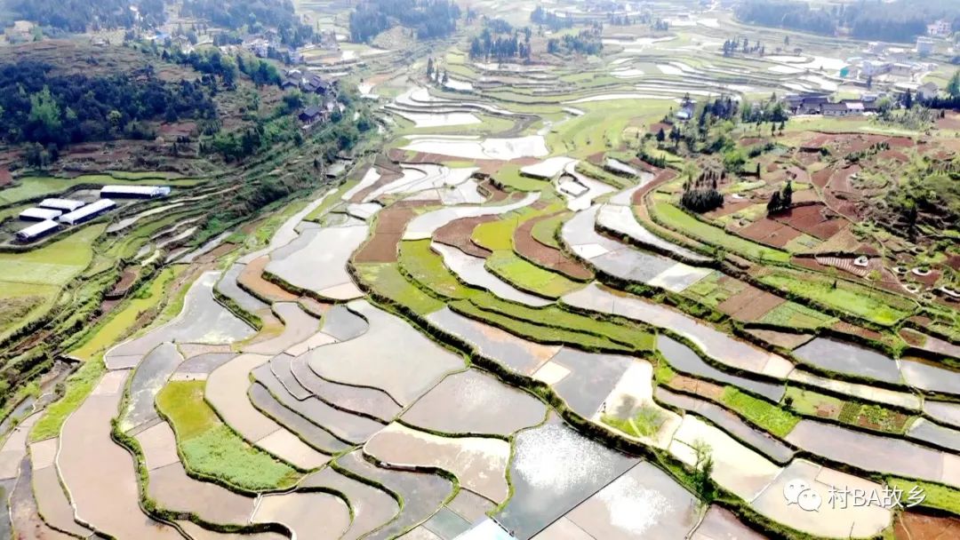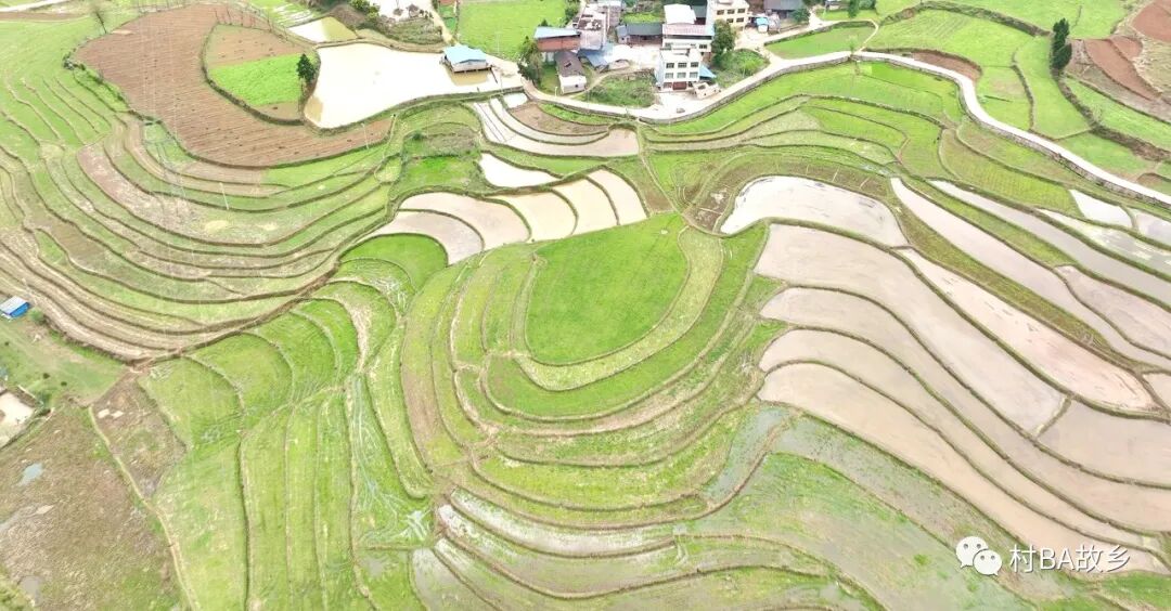 眼下正是水稻播种时节,黔东南的乡村田野一派春耕春种繁忙景象。纵横交错的稻田蓄满春水后,水光滟潋,生机勃勃。放眼望去,呈现出白、绿、红等一个个深浅不一的色块,大地犹如一块调色盘,线条优美的稻田与鳞次栉比的民居相互映衬,构成了一幅美丽的乡村田园画卷。