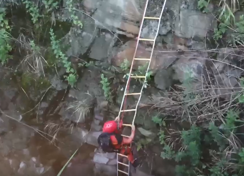 随后消防救援人员利用扁带制作了两个锚点进行固定 一名消防救援人员做好安全措施后从一侧的悬崖缓慢下至底部被困人员处 另一组消防救援人员利用绳索下降器和两根100米的静力绳制作了一套3:1倍力系统进行提拉救援 成功把被困人员转移到安全地点 无独有偶 5月10日18时27分在锦屏县三江镇风雨桥一名男子同样因在钓鱼时水位上涨无法返回岸上导致被困 锦屏县消防救援大队接警后