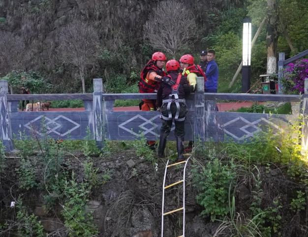 立即出动前往处置 到达现场后天色渐暗水位逐渐上涨被困群众情绪开始激动 消防救援人员立即组织营救 利用岸上坚固树木作为固定点固定绳索、绳梯由一名消防救援人员携带救援装备下降至桥底帮助被困人员穿戴好防护装备 在确保安全后引导被困群众慢慢向上爬岸上的消防救援人员通力合作利用绳索在攀爬的过程中对其进行保护 最后消防救援人员背上被困者的钓鱼装备利用绳梯攀爬上岸经过19分钟营救被困人员成功脱险