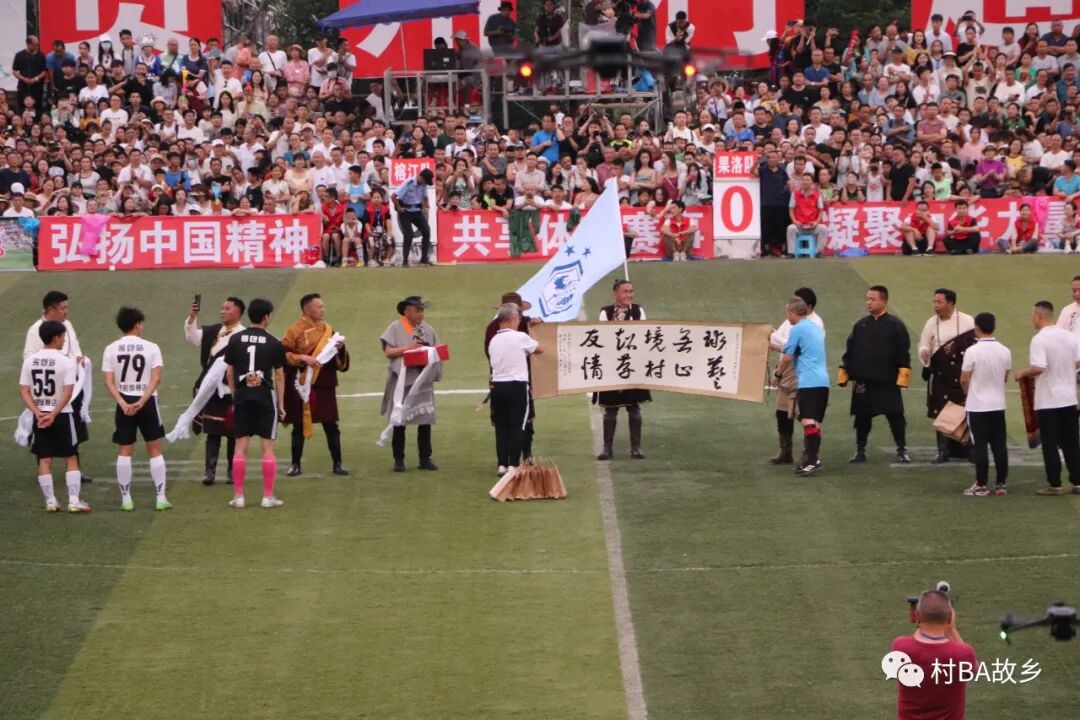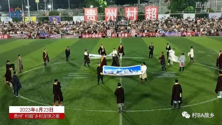 范志毅所带领的果洛藏族自治州阿尼玛卿足球联队队员身着藏族服饰来到“村超”现场
