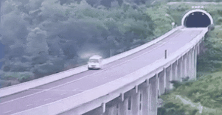 监控视频显示,当客车行驶出隧道没多远,就慢慢偏离,开向了应急车道,随后车辆与桥栏发生了激烈摩擦,玻璃飞溅得到处都是。