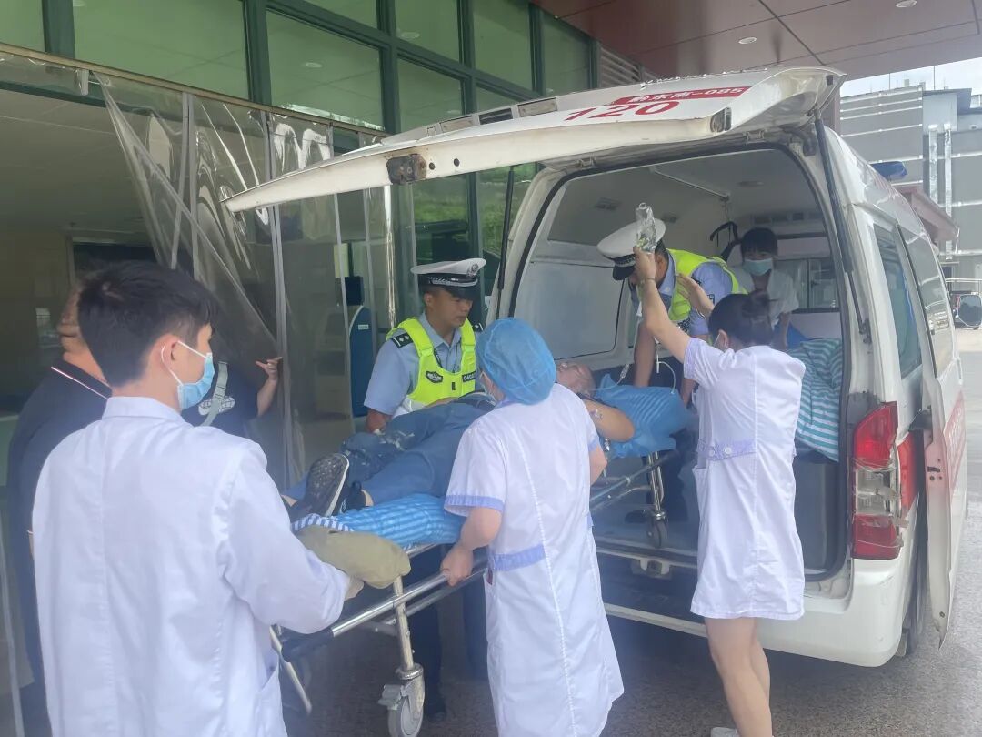 民警:不要睡着师傅,保持清醒,保持清醒!我们已经通知你女儿了,马上到医院了。马上到医院了......不要睡着了,不要睡着了!跟我们讲点话都可以。