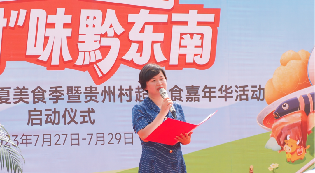 上午10时,在启动仪式上,黔东南州商务局党组书记黄明霞表示,为积极抢抓“村超”“村BA”赛事热点和暑期消费旺季,进一步丰富消费场景,提振消费信心,激发消费潜力,在黔东南州范围内举办消夏美食季暨贵州村超美食嘉年华。通过以赛促旅、以赛促消,助燃城市“烟火气”,将“流量”转化为“流量经济”,让黔东南的人气“旺起来”、消费“火起来”、群众“乐起来”。