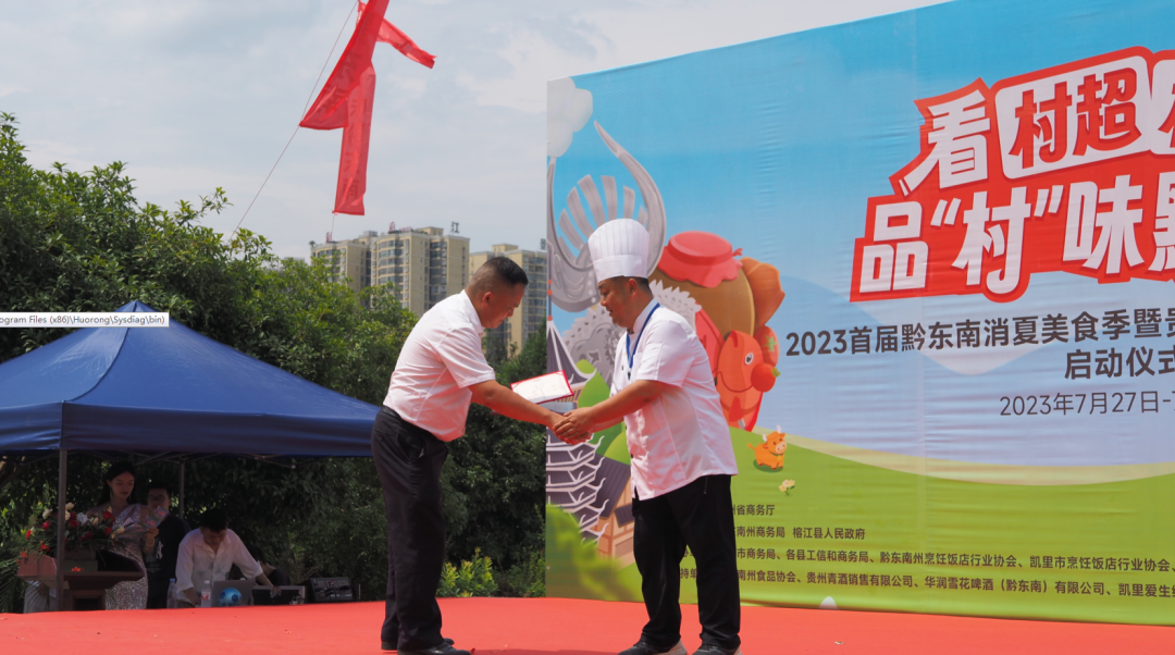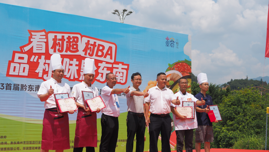 黔东南州食品行业协会、贵州青酒销售有限公司、贵州爱生缘酒业有限公司、华润雪花啤酒(黔东南)有限公司、联合利华、中新燃、苗侗山珍、榕江餐饮行业协会为村超美食节也贡献了一份属于贵州企业的力量。为这次活动注入更多新鲜的活力,为黔东南美食的发展提供更强有力的动力。