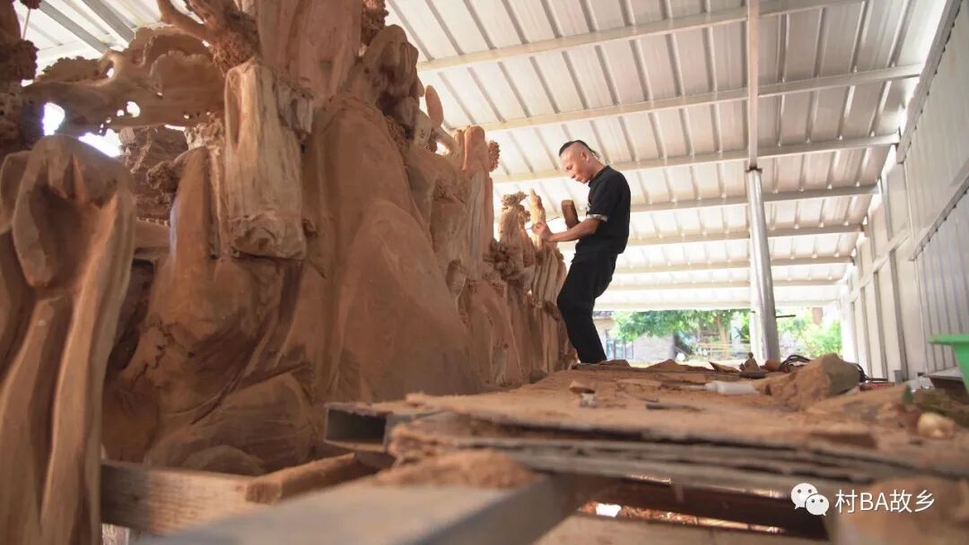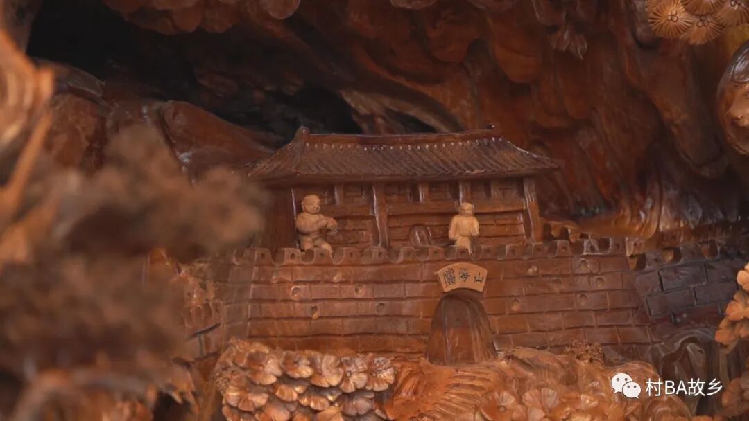 《万里长城》根雕作品融合绵延了中国传统文化和匠人的爱国情怀这两大中华传统元素,是在一块单体重达3吨的香樟木大树根上进行设计与雕琢而成,该木料采自黄平县新州镇槐花山区,呈不规则形状,它长7米、高4米、宽2米,最大周长近22米。(黄平融媒记者:罗迈 张平  潘家平)