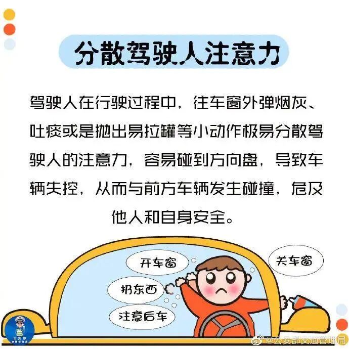危险局面行车时向外抛洒垃圾不仅是不文明行为而且还将影响自己和他人的行车安全