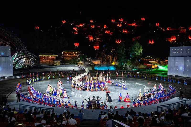 送鼓民族大团结舞 苗族人勤劳善良,能歌善舞,这里是歌的世界、舞的海洋。以时间为轴,以民族史诗为笔,团结舞,象征各民族大团结。